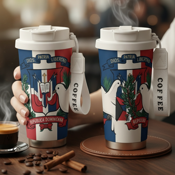 Breng de zon en de trots van de Dominicaanse Republiek overal mee naartoe met deze unieke en stijlvolle reisbeker! De DO-MINI Koffiebeker is méér dan een beker; het is een statement. Perfect voor jouw dagelijkse koffie, thee of favoriete koude drank, of je nu onderweg bent naar werk, school, of gewoon van huis naar de bank.